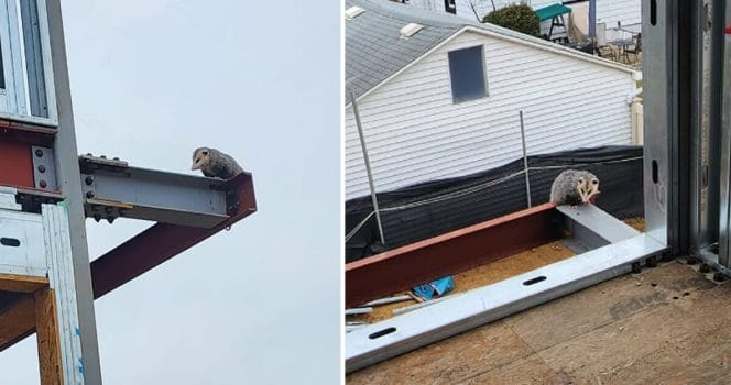 ”Pungråttan måste ha gått upp dit under natten när det inte fanns någon där som arbetade med bygget,” har han berättat för The Dodo.