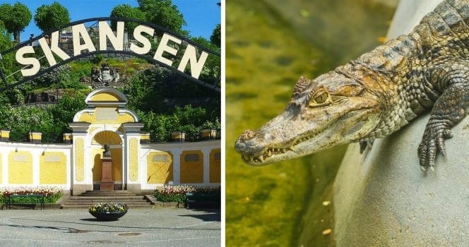 Men vid klockan 21:50 larmades polis och räddningstjänst till Skansen för att en man har blivit biten av en krokodil.