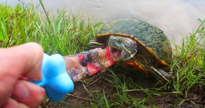 Men några som fullkomligt älskar isglassen med det mycket annorlunda innehållet är dessa sköldpaddor.