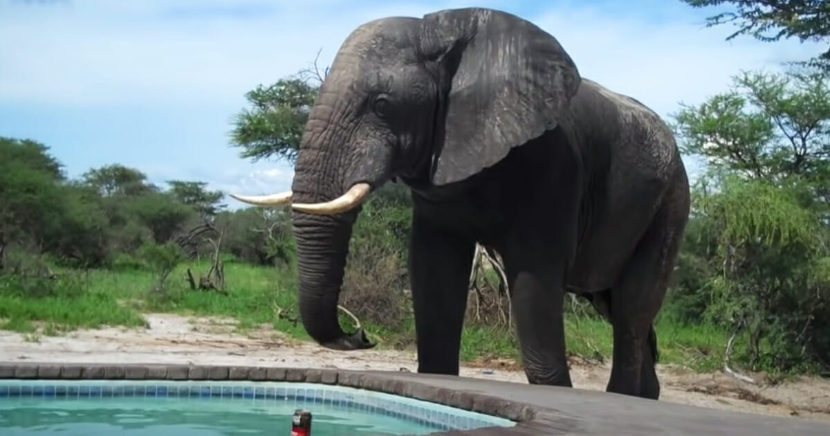 Människor badar i poolen när elefanten kliver fram till kanten – bjässens nästa reaktion har setts av miljoner