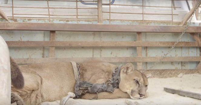 Bergslejonet Mufasa hade utsatts för just detta. Han hittades fastkedjad på flaket på en bil – och hade levt så i 20 års tid. Han hade kuskats runt och används som en vandrande leksak på en cirkus i Peru, skriver The Independent.