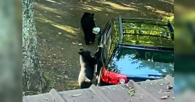 Utanför huset hade de parkerat sina bilar – och dessa kom att hamna i fokus för några vilda björnar som plötsligt närmade sig en morgon, skriver The Dodo.