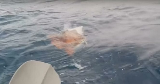 Det fick mannen i det här videoklippet verkligen veta när han var ute och paddlade och en stor varelse kom flytandes mot honom i vattnet.