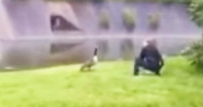 Det var en helt vanlig vårdag 2016 som denna gåsmamma närmade sig en polisbil. Polisen som satt i bilen förstod så klart inte vad djuret ville.
