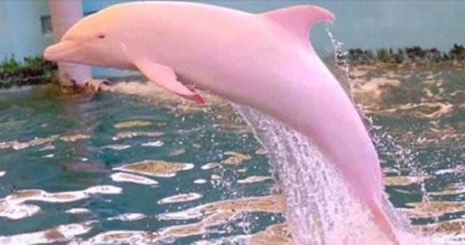 Delfiner har vanligtvis rosa magar, men att hela kroppen är täckt av rosa färg är oerhört sällsynt.