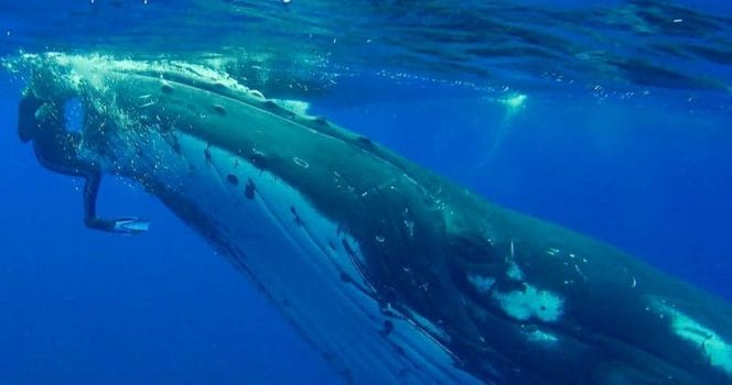 Det var i oktober som Hauser var och dök utanför Cook-öarna tillsammans med ett kamerateam som skulle filma hennes dyk med en grupp knölvalar.