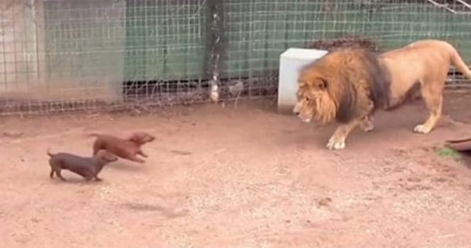 Jag antar att inte många av er hade förväntat sig att få se ett fullvuxet lejon forma en vänskap med två små hundar?