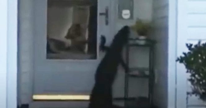 Övervakningskameran vid huset visade nämligen att en fyrbent varelse hade letat sig fram till ytterdörren. Plötsligt ringde det på ringklockan.