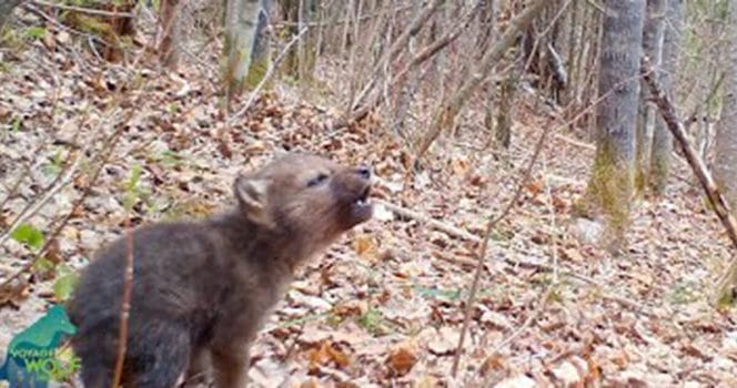 Vargungens första tjut fångas av kameran – håll ett öga på när han öppnar munnen och välkomnar våren